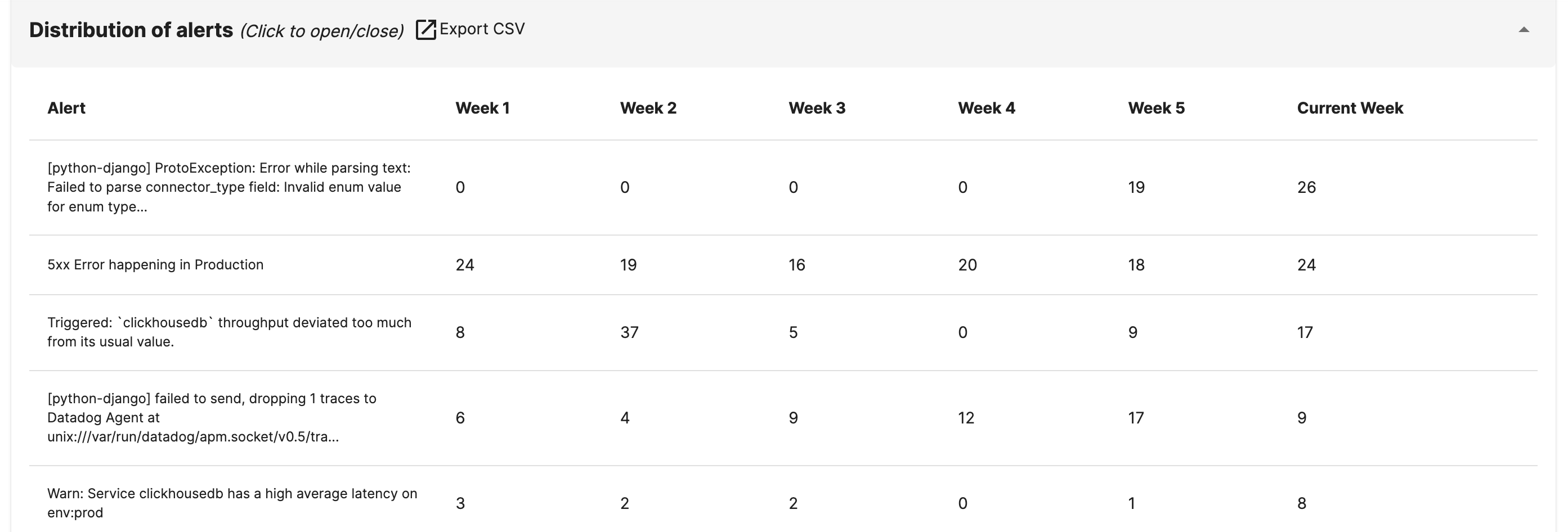 You will be able to get a summary of the most noisy alerts, with it’s pattern over the last few weeks.