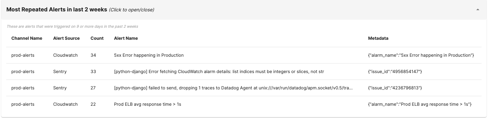 Instantly, you will be able to start tracking the alerts that are causing the most noise in different channels.